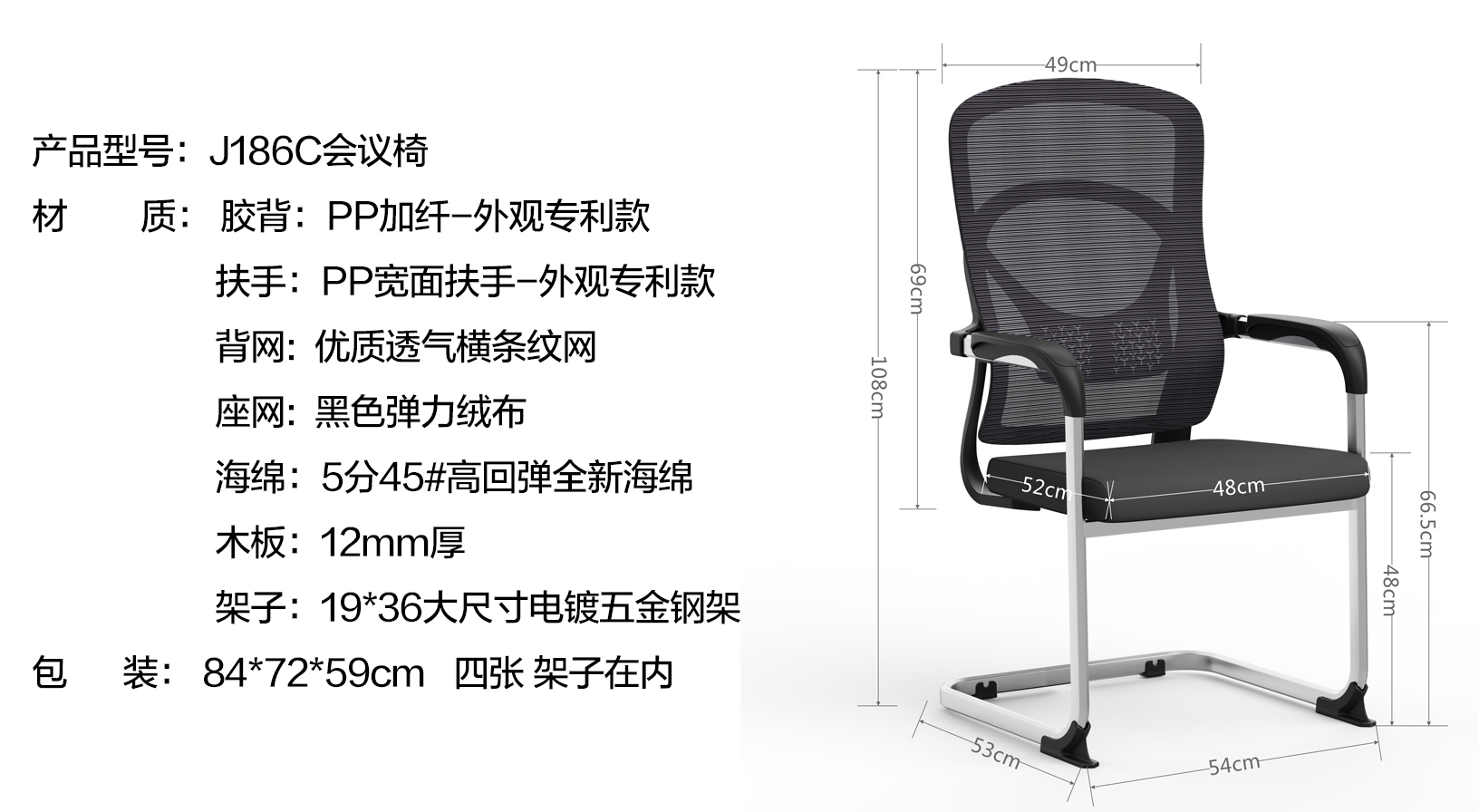 胶背:PP加纤-外观专利款材 过85KG拉力测试 扶手:PP宽面扶手-外观专利款 背网:优质透气横条纹网 座网:黑色弹力绒布 海绵:5分45#高回弹全新海绵 保用5年不塌 木板:12mm厚 架子:19*36大尺寸电镀五金钢架