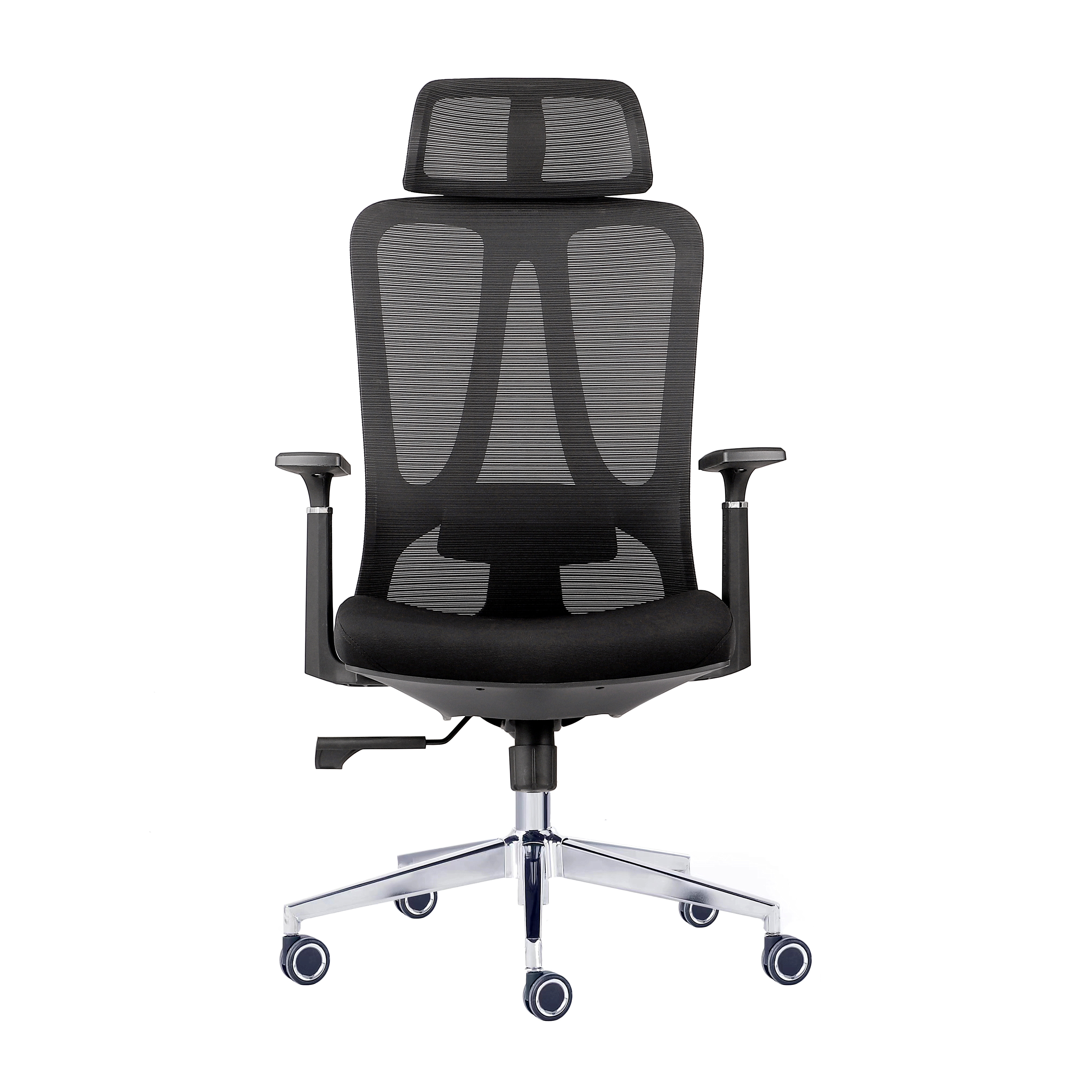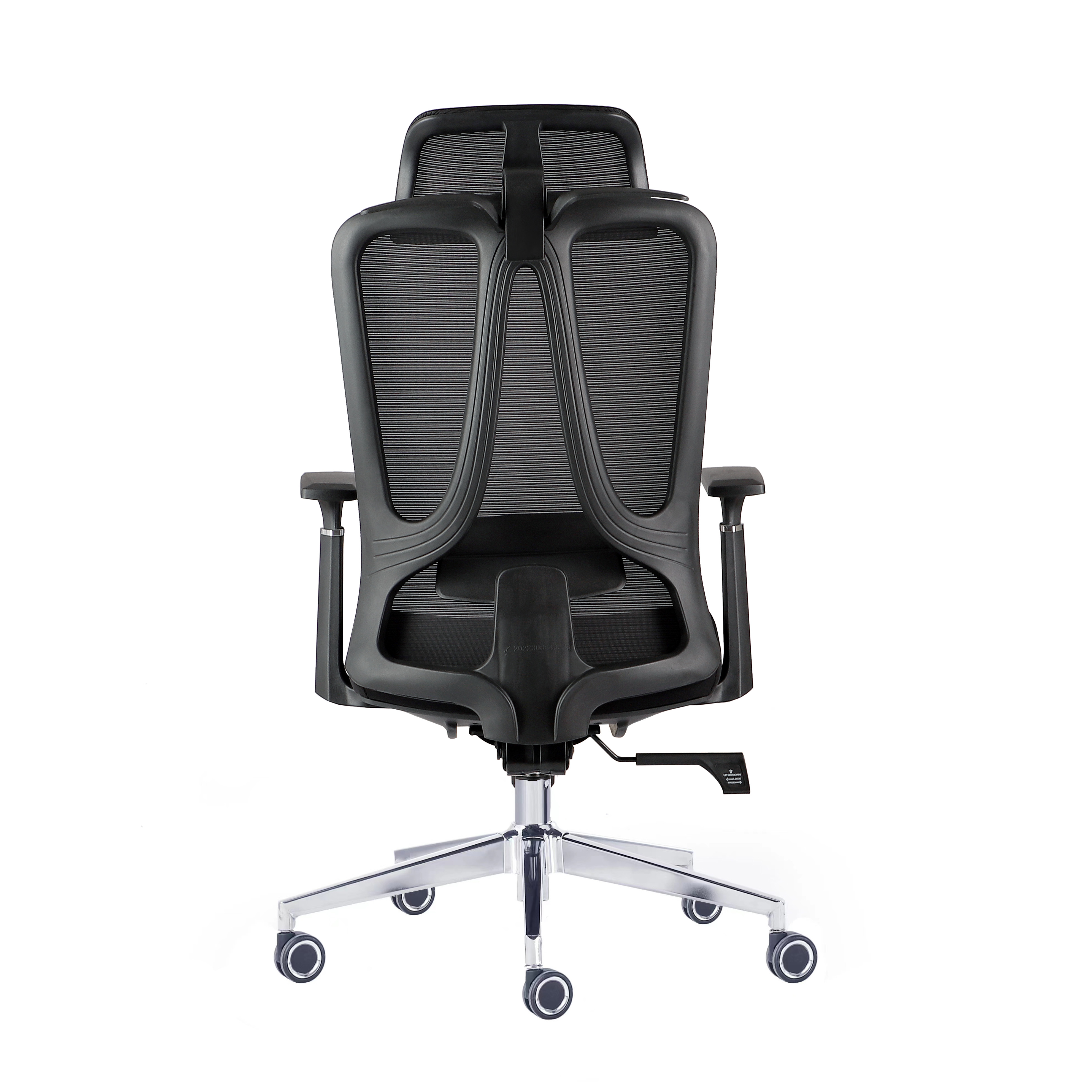 人体工学转椅 ■靠背:全新PP加纤注塑成型一体胶框 ■头枕:升降宽体头枕-升降+后仰翻转 ■扶手:PP固定扶手 ■面料:背网采用横条纹加厚涤纶网布,座网采用优质棉绒弹力横纹面料,具有色彩鲜艳不褪色,韧性抗拉性强,耐磨损,无毒,耐腐烂,耐化学品,耐高温抗紫外线,透气性强,使用寿命长等特点 ■腰靠:腰部采用升降可调设计,具有50mm升降行程调节,腰背支撑更舒适 ■椅座:用2E标准胶合板搭配5.5CM高密度复合纯棉,增强坐感舒适度,带装饰座壳 ■底盘:三档后仰锁定功能底盘;后仰锁定角度90°-135° ■气杆:100#三级下沉4m电镀气杆,升降调节高度10cm ■脚轮: 60#PU中空电镀轮,过10万次负重滑动测试 ■椅脚:350#电镀钢制五星脚