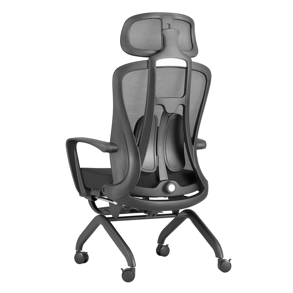 ·背框:PP+GF玻纤料,过105KG拉力测试 ·腰枕:PP材质-支撑松紧可调节-软包带绵舒适 ·升降头枕:新尼龙加纤框架,上下可升降滑动5cm ·面料:靠背用优质涤纶网布,座包用高弹力横纹布 ·扶手:黑色PP联动扶手 ·坐垫棉:8分厚舒适高回弹定型海绵,质保5年不塌 ·座板:12mm成型夹板 ·后仰气杆:安全防300N-90°-160°-大后仰角度可躺调节 ·底盘:加厚升降调节方盘 ·脚轮:60#尼龙刹车轮-过负重10万次滑动测试 ·钢架:25*50大尺寸旦管四脚黑漆架-稳固支撑
