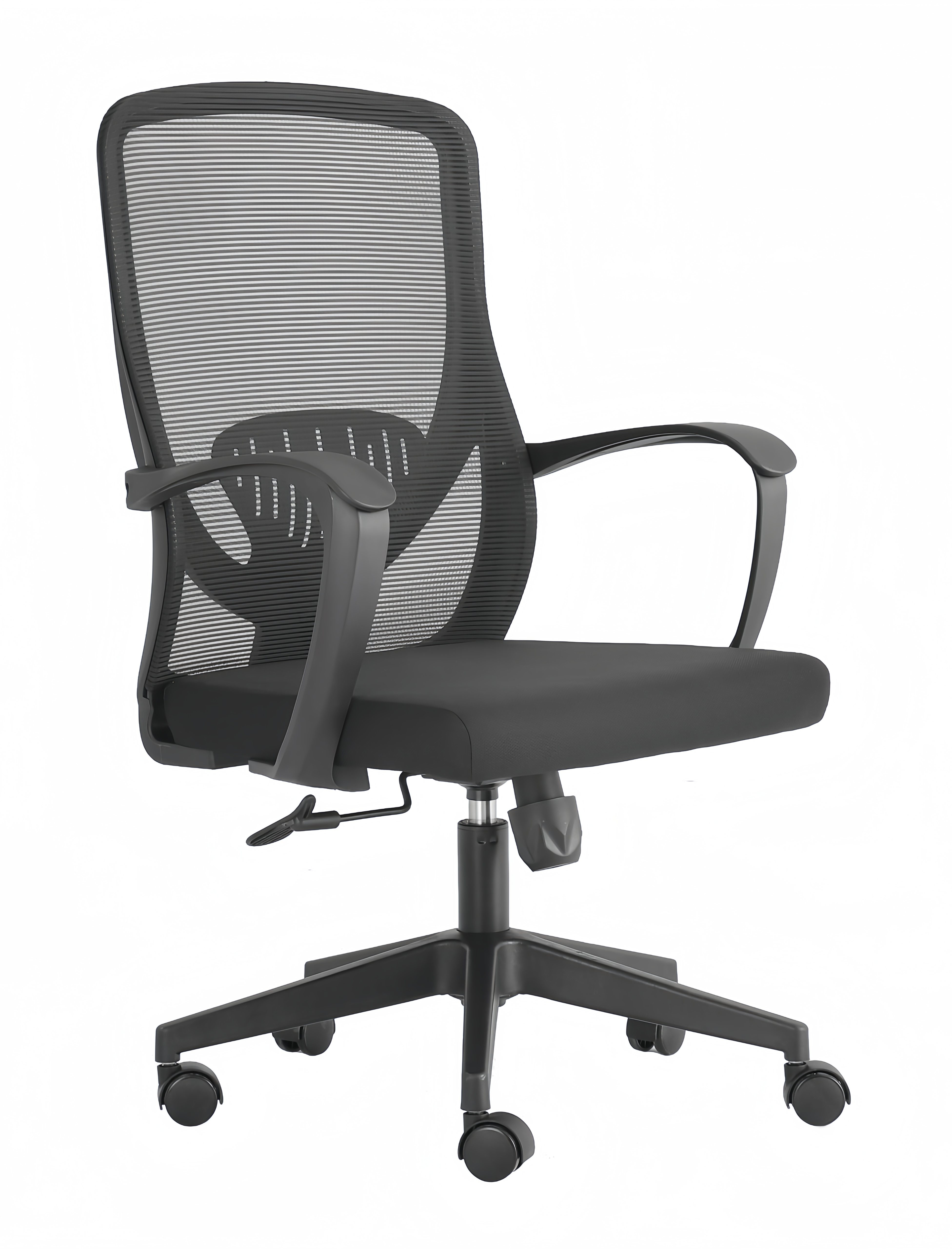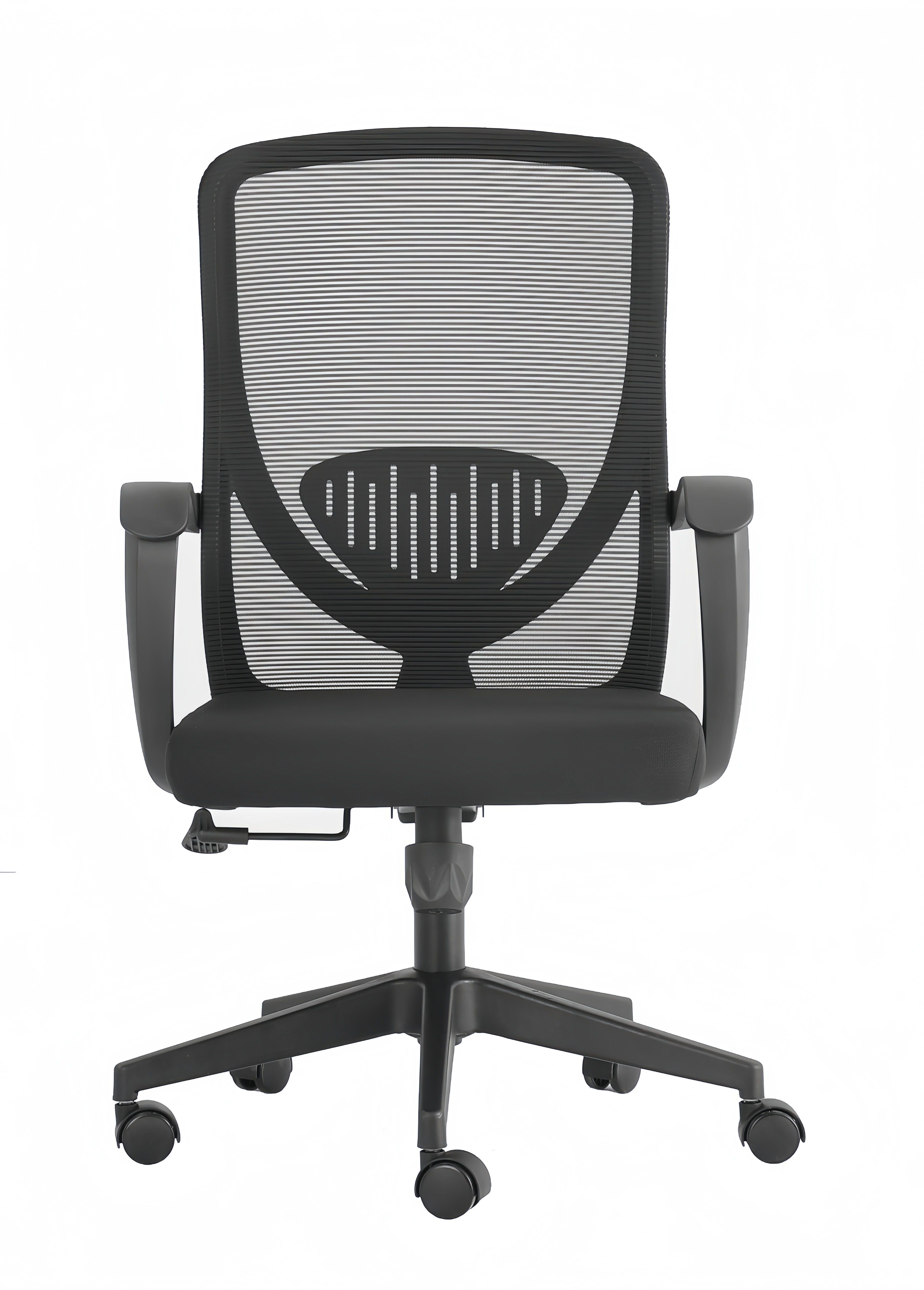 胶背:PP加纤一体注塑成型背框 背网:优质耐磨涤纶透气横条纹网 座网:弹力绒布 PP加纤宽体扶手 座绵:5分厚高弹舒适海绵 保用5年不塌 座板:12mm厚 底盘:后仰逍遥蝴蝶机制底盘 气杆:100#黑色防爆气杆,升降高度10cm 脚轮:50#尼龙轮 椅脚:320#PP脚,静压测试750KG