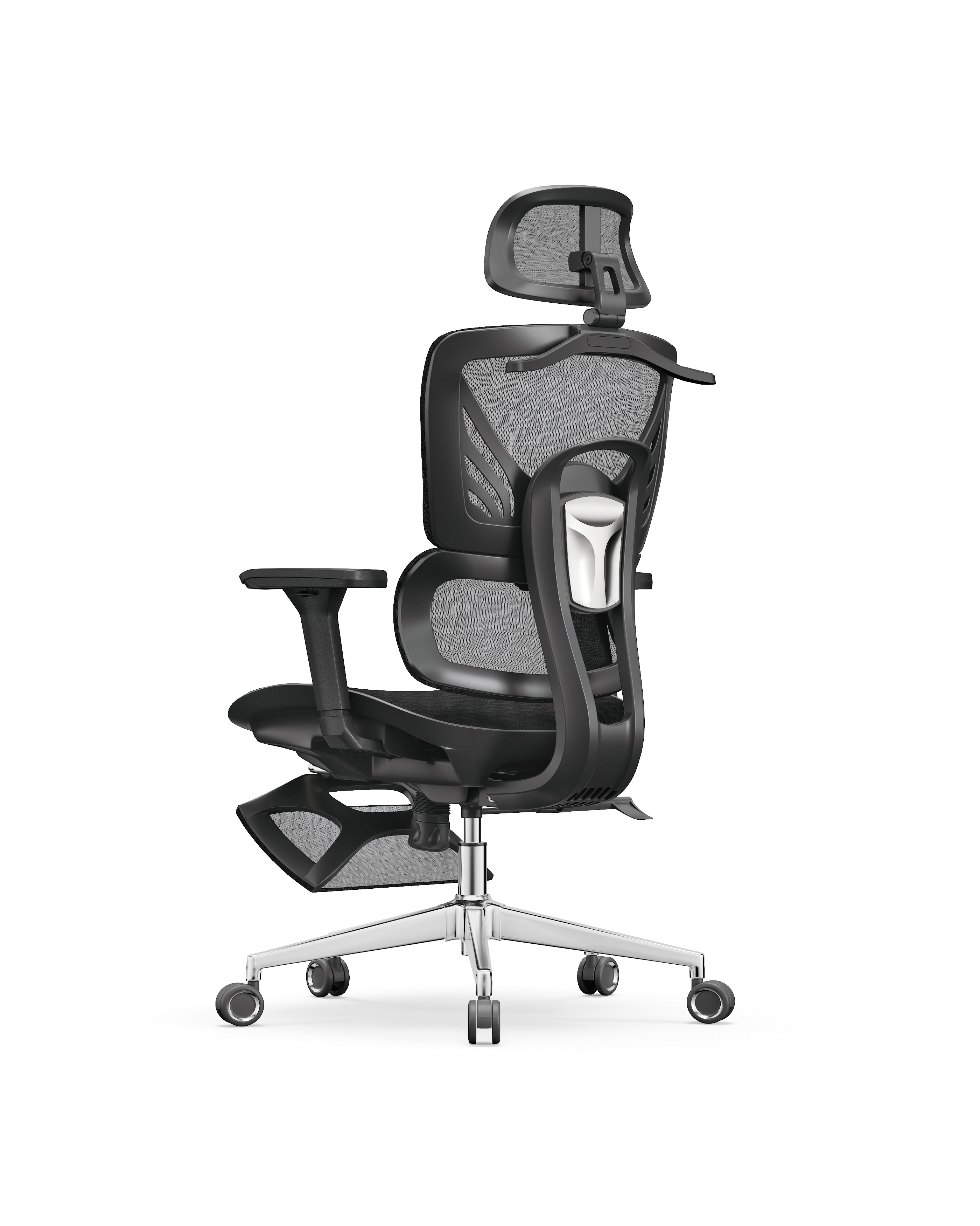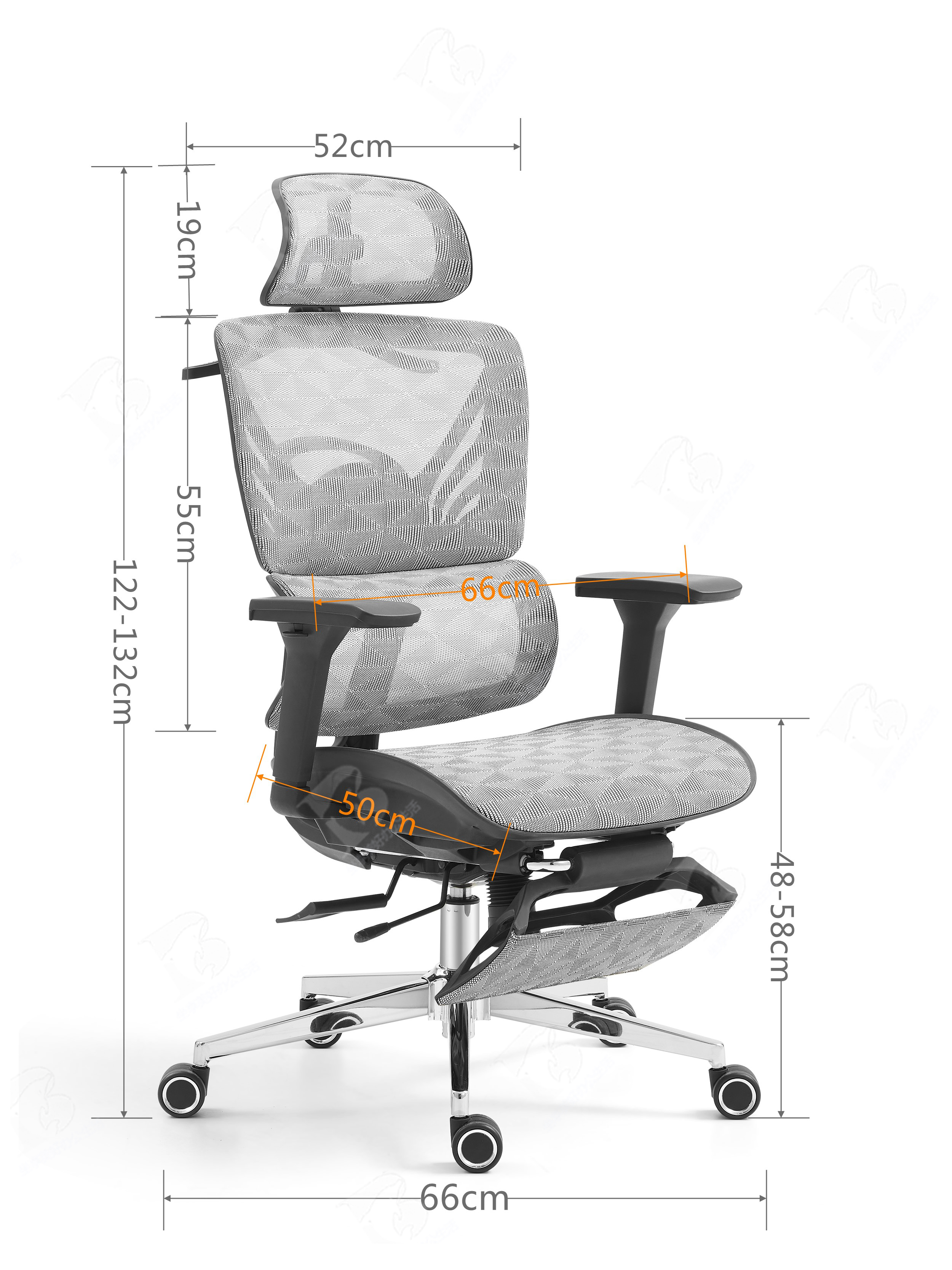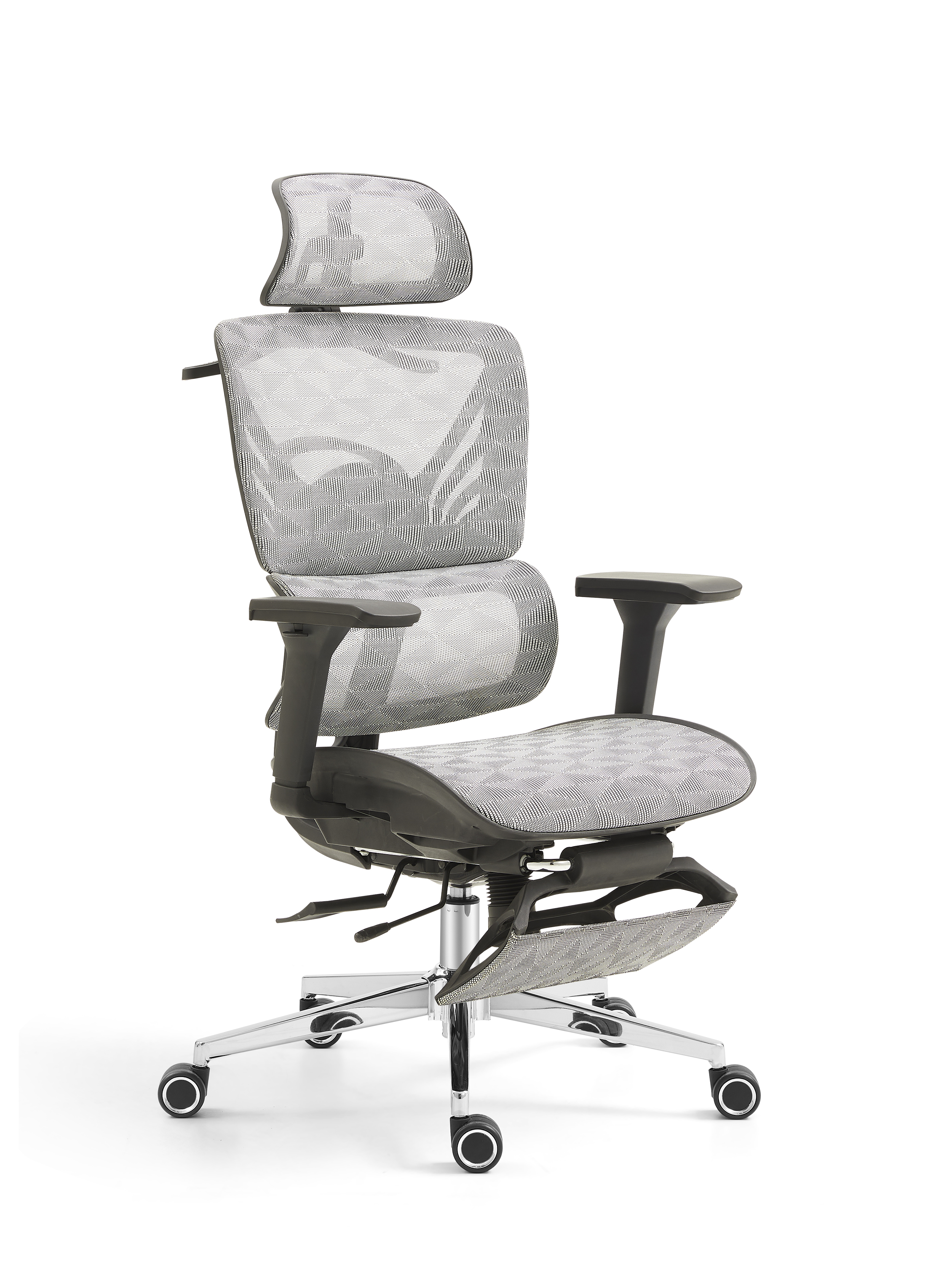 ■靠背:全新PP加纤注塑成型一体胶框 ■头枕:升降宽体头枕-升降+后仰翻转 ■扶手:4D调节PU扶手-升降+左右旋转+左右平移+前后滑动 ■面料:采用优质特网,具有色彩鲜艳不褪色,韧性抗拉性强,耐磨损,无毒,耐腐烂,耐化学品,耐高温抗紫外线,透气性强,使用寿命长等特点 ■腰靠:分体独立支撑网面腰枕,自适应回弹支撑 ■椅座:坚固尼龙宽体镂空座框,舒适透气 ■底盘:三档后仰锁定功能底盘;后仰锁定角度90°-135° ■气杆:100#三级下沉4m电镀气杆,升降调节高度10cm ■脚轮: 60#PU中空电镀轮,过10万次负重滑动测试 ■椅脚:350#电镀钢制五星脚 ■脚踏:可伸缩收纳式透气舒适网面脚踏