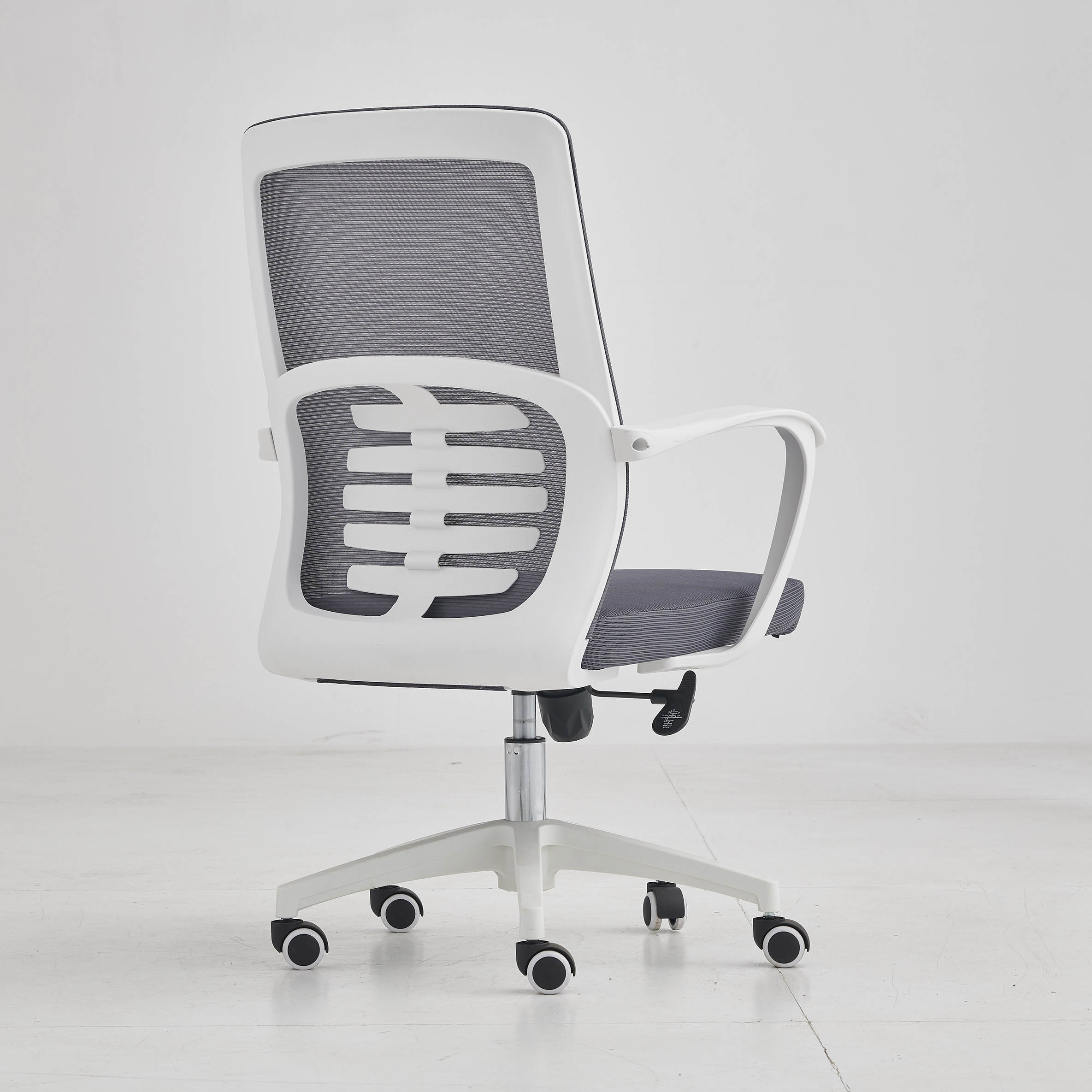 胶背:PP加纤 扶手:68mm宽体扶手贴合手腕曲线设计 背网:优质透气条纹网 座网:黑色弹力绒布 海绵:高回弹海绵 底盘:蝴蝶底盘机制,逍遥后仰功能 气杆:100#防爆安全气杆升降高度调节10cm 轮子:50#尼龙轮 脚:320#胶脚 静压承重测试 >720KG