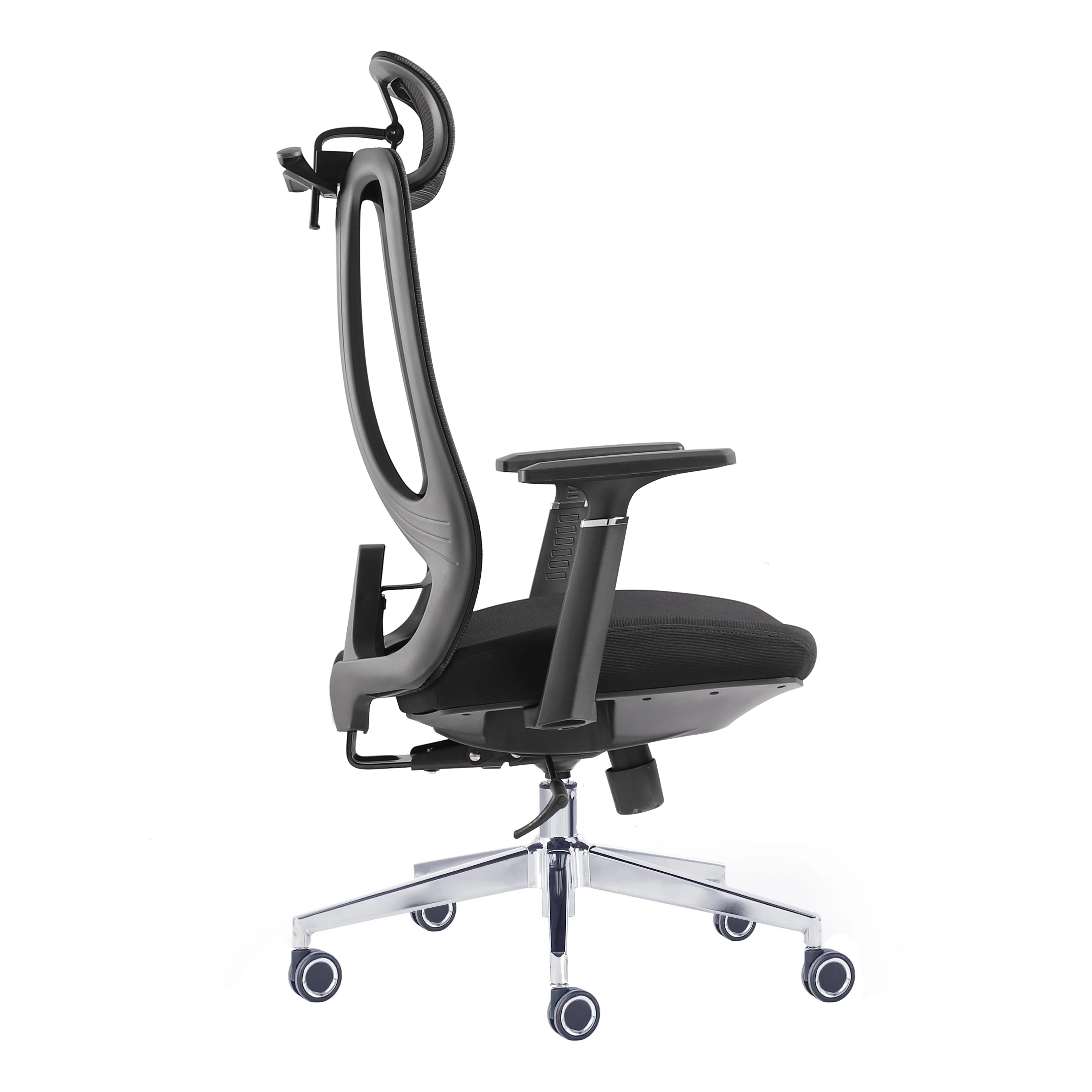 人体工学转椅 ■靠背:全新PP加纤注塑成型一体胶框 ■头枕:升降宽体头枕-升降+后仰翻转 ■扶手:PP固定扶手 ■面料:背网采用横条纹加厚涤纶网布,座网采用优质棉绒弹力横纹面料,具有色彩鲜艳不褪色,韧性抗拉性强,耐磨损,无毒,耐腐烂,耐化学品,耐高温抗紫外线,透气性强,使用寿命长等特点 ■腰靠:腰部采用升降可调设计,具有50mm升降行程调节,腰背支撑更舒适 ■椅座:用2E标准胶合板搭配5.5CM高密度复合纯棉,增强坐感舒适度,带装饰座壳 ■底盘:三档后仰锁定功能底盘;后仰锁定角度90°-135° ■气杆:100#三级下沉4m电镀气杆,升降调节高度10cm ■脚轮: 60#PU中空电镀轮,过10万次负重滑动测试 ■椅脚:350#电镀钢制五星脚