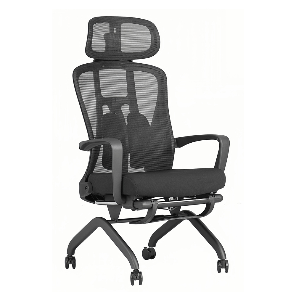 ·背框:PP+GF玻纤料,过105KG拉力测试 ·腰枕:PP材质-支撑松紧可调节-软包带绵舒适 ·升降头枕:新尼龙加纤框架,上下可升降滑动5cm ·面料:靠背用优质涤纶网布,座包用高弹力横纹布 ·扶手:黑色PP联动扶手 ·坐垫棉:8分厚舒适高回弹定型海绵,质保5年不塌 ·座板:12mm成型夹板 ·后仰气杆:安全防300N-90°-160°-大后仰角度可躺调节 ·底盘:加厚升降调节方盘 ·脚轮:60#尼龙刹车轮-过负重10万次滑动测试 ·钢架:25*50大尺寸旦管四脚黑漆架-稳固支撑