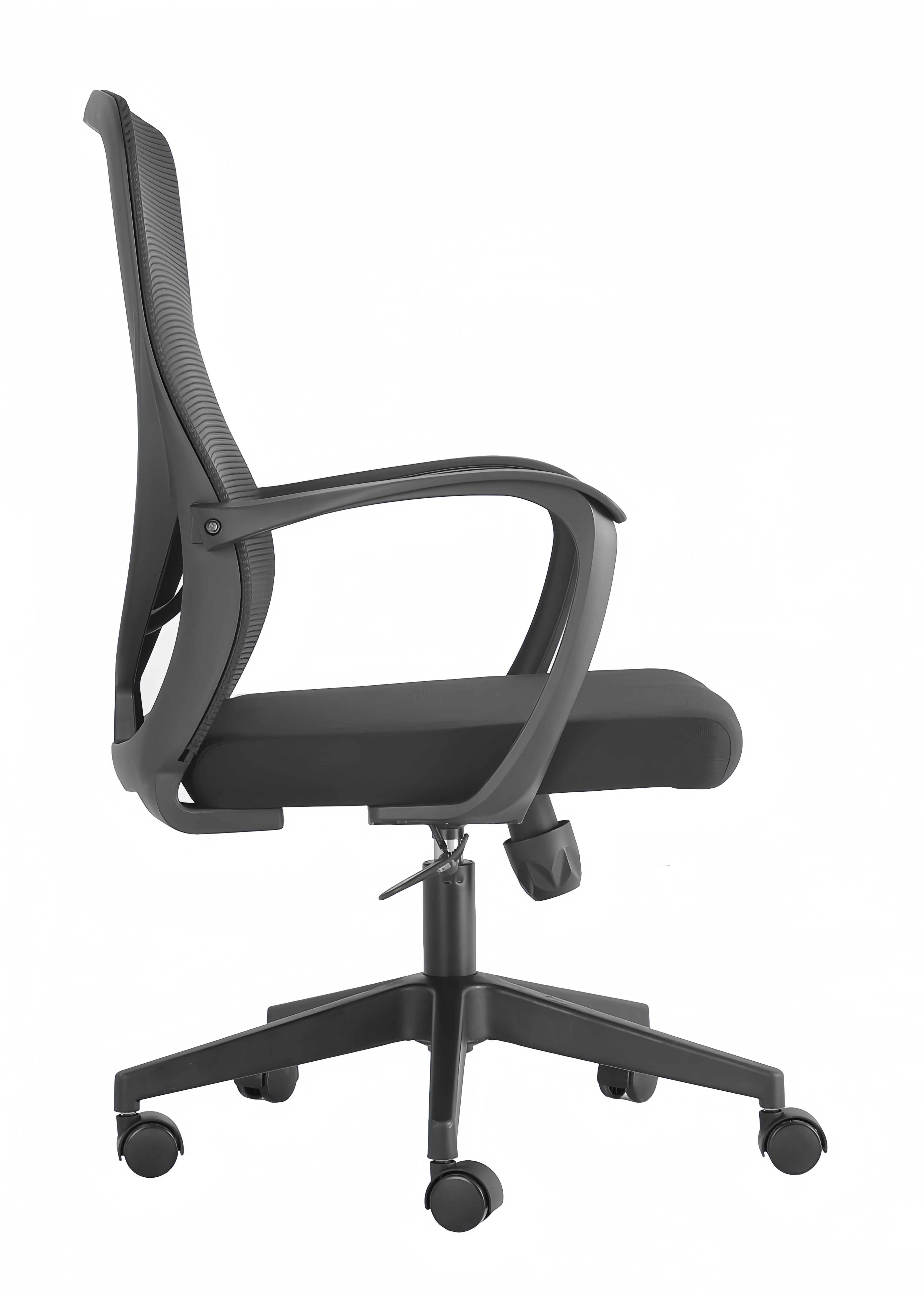 胶背:PP加纤一体注塑成型背框 背网:优质耐磨涤纶透气横条纹网 座网:弹力绒布 PP加纤宽体扶手 座绵:5分厚高弹舒适海绵 保用5年不塌 座板:12mm厚 底盘:后仰逍遥蝴蝶机制底盘 气杆:100#黑色防爆气杆,升降高度10cm 脚轮:50#尼龙轮 椅脚:320#PP脚,静压测试750KG